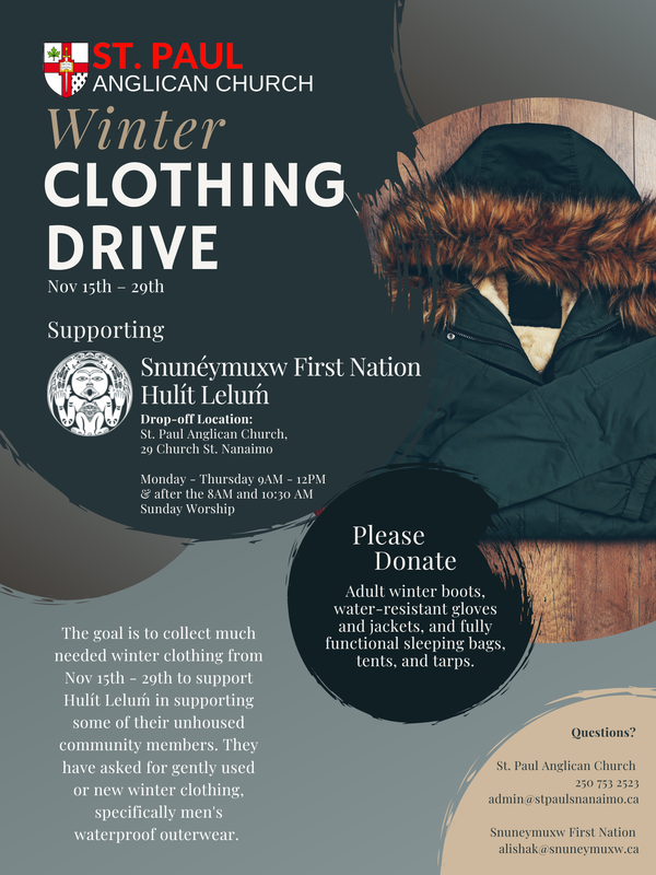 unhoused community members. Bring your gently used or new winter items to the parish